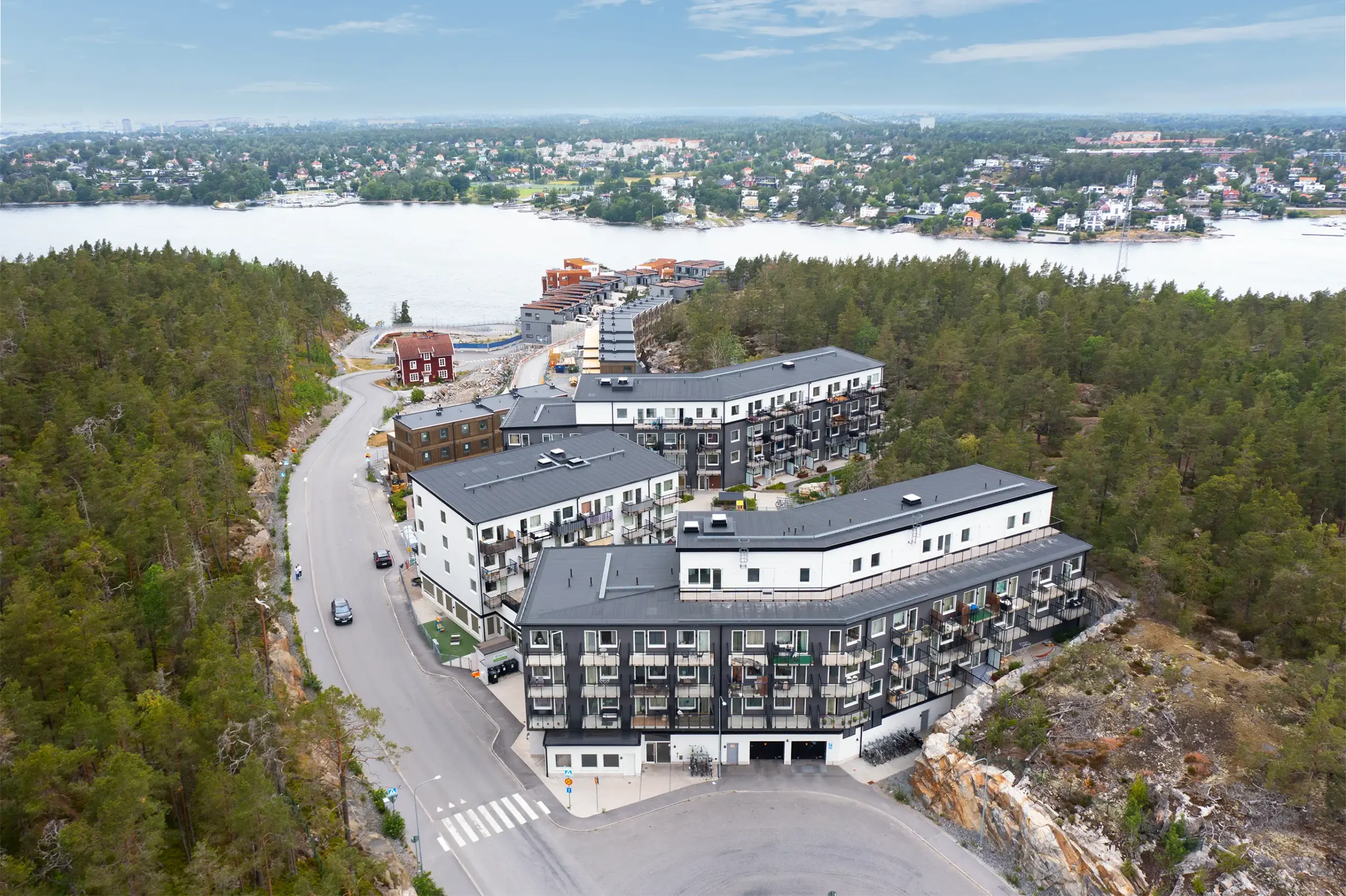 Skogshusen ligger i Saltsjö-Boo vid Telegrafberget, precis intill Skarpnäs naturreservat med utsikt över Stockholms inlopp. Här bor du högt och naturnära med skog, vatten och klippor runt knuten, samtidigt som du har enkel åtkomst till city med både buss och pendelbåt. Waxholmsbåt från kajen tar dig in till stan på cirka 18 minuter, och buss mot Slussen stannar vid Telegrafbergets vändplan. Den nya busslinjen 416 går mellan Telegrafberget och Orminge centrum, som tillsammans med Sickla Köpkvarter och Nacka Forum erbjuder ett brett utbud av service, butiker och vardagsärenden.